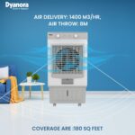 Dyanora 60 L Desert Air Cooler with InstaCool Technology and Honeycomb Cooling Pads (White, Black, DY-CL60-01-BW)