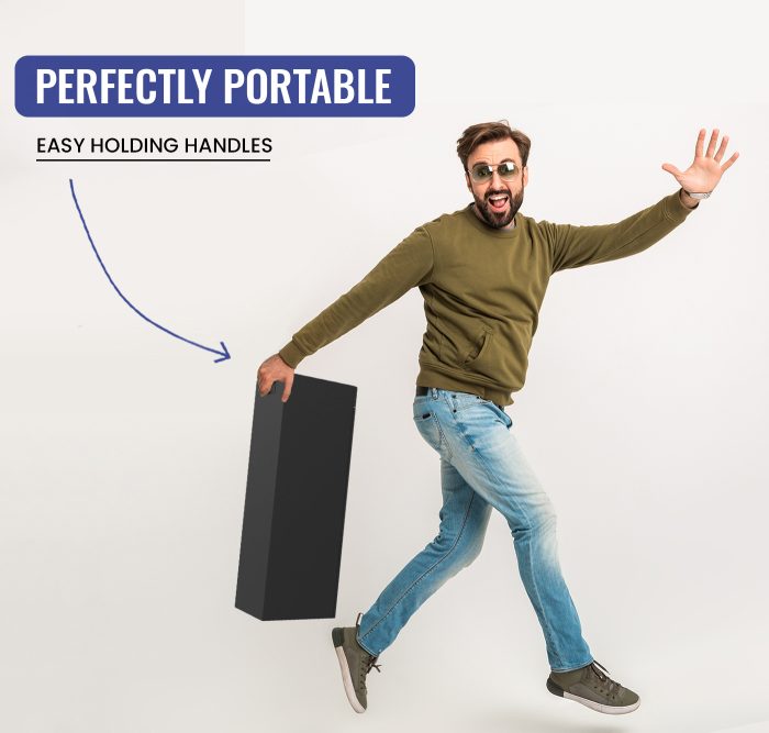 Dyanora brings you a 90 Watt Tower Speaker with wireless Bluetooth connectivity. Dyanora Bluetooth Tower Speaker is Sleek, Trendy, and Classy and designed for the Ultimate Music listening experience. This tower speaker comes with the most advanced TWS Connectivity that lets you have a stereo effect by connecting 2 of your speakers wirelessly. The Speaker is battery powered having a playtime of up to 24 hrs at 60% volume that lets you create the perfect party vibe. Lastly, it comes with karaoke supported.
