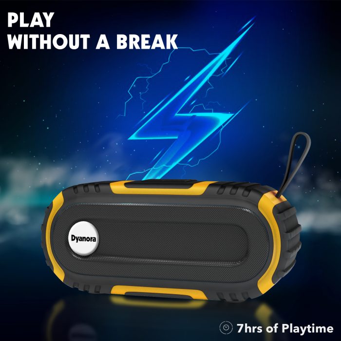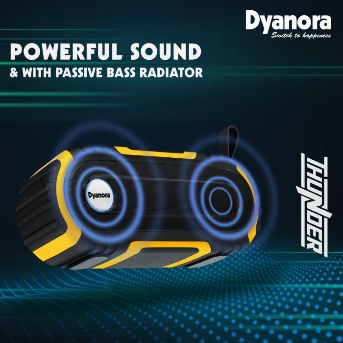 Dyanora Thunder DY-BT10-01 10W (2 * 5W) Bluetooth Speaker Ultra Clear Audio & Passive bass Radiator, Bluetooth V5.0, Upto 7 hrs of Play time (Black – Yellow)