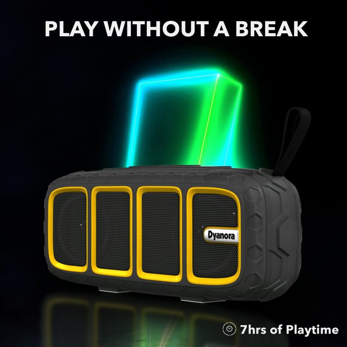 - Play it without a Break: The Dyanora Thunder 6w speaker packs a battery of 1200 mAH that can eaily withstand for 7 hrs on a single charge allowing you to party till the dawn.